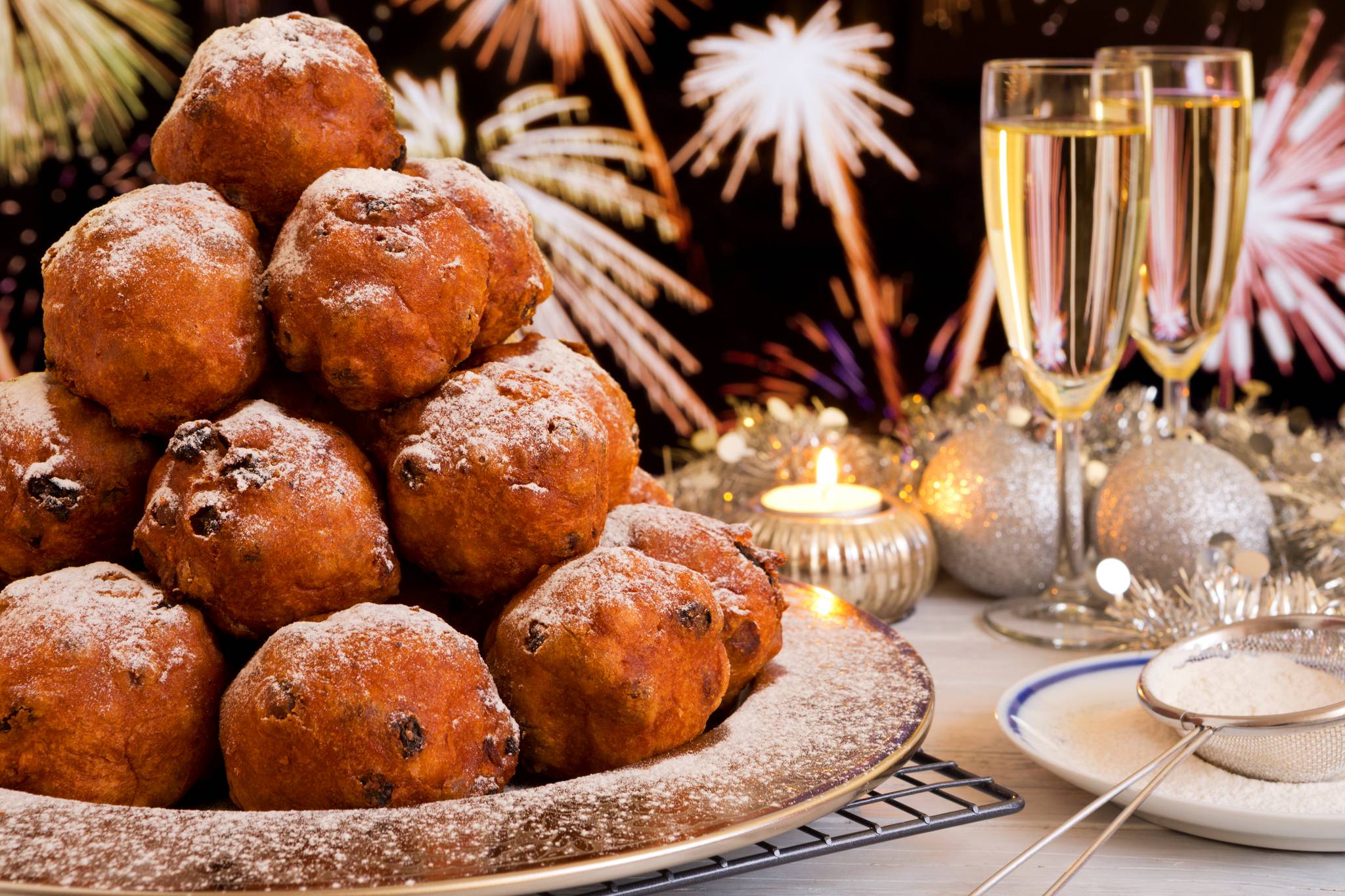 Dulcis in fundo, i tipici Oliebollen: dolci fritti tipici del periodo natalizio, simili a piccole frittelle dolci, spesso arricchiti con uvetta o mele. Vengono mangiati spesso anche in Belgio e sono legati alla tradizione delle feste di paese e, soprattutto, alla Notte di Capodanno: vengono infatti usati per accompagnare il brindisi di mezzanotte!